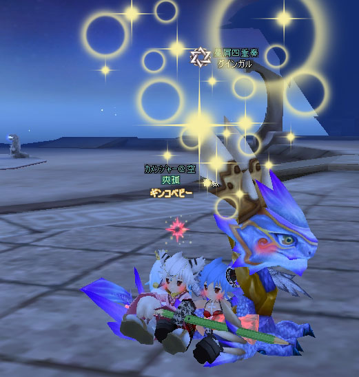 Lv30になりましたw 空賊装備でかかんにロッコに挑む・・・(死んだけど 何故いきなりこっからのスタートになったかというと! はい! 新しい群を作ろうと思ってww その名も・・・ 『イベント中で~す♪』 ぇ 素材集めにふらふらすること数時間。 途中で盗賊だと死ぬので、メインで集めることちびっと。 いざ!群申請! ・・・・。 入りきらねー! よーく考えたら イベント=5文字!? 半角で4文字でぎりぎり予定だったのが、完全に崩れた! 困った、困ったぞー! ひとりでぶつぶつ考えるには、限界が!!(をぃ ふと、悩める私の前にルンルンと歩いてくる人影が!! えいっ!(無言部隊! ・・・。 ・・・。 あ、黒威ちゃんでーす!(じぶんでちゃんづけするな びっくりしたー!って言われました。黒沙のままだった^^ 同じことをもう一人にもやる。 くろいちゃんでーすw と言う前に、部隊断られてるし(´▽`*)アハハ そしてお二方に手伝ってもらうこと数分?もうちょっと、新しい群名が決まりました! その名も『イベントchu☆ミ』! 可愛くないですか? +o。(σ´∇`*)ゞエヘヘッ。。o+゚ 結構がんばって考えた。 付き合ってくれたひらさんと、うるっぺさん本当にありがとうw助かったわwww ↑証拠のSS(ぇ ふたりともほんとーーにありがとw 無事群名が決まったところで、続きをw 次は、群章!! このふたつに最終的には絞込み・・・いっぱい悩んで、 こうなりましたw 暇人で~す♪と対になるよーにw これですっきりした^^ @はイベント考えるだけ!(ぇ ちなみに今晩は『摩天楼』主催の 花火大会ですよん! 9時からね! となぜかCMしてみたり(〃▽〃)キャッ 空鯖でもCMしてきたよw(ぇ で、あることをたくらんでみる。 メインでお姫様抱っこw 90代の龍なみうさんが重そうに持ってくれましたorz す、スリムになるべきかしら? これを見てた桃ハロさんに羨ましいって言われちゃった(´▽`*)アハハ おまけに、愛人さんにも強請った(ぇ わんこがすっぽりw もっと小さなわんこならもっとよかった? ギンコがうらやましそうに、見てます。 ロロが、見ないフリしてくれますww そして・・・ 露店が0件だったから、なんとなく露店してると1匹の鳥さんがやってきた!? 果たしてこの『青威ん子』さんの正体は!? てか、私じゃないからそこんところよろしくw PR